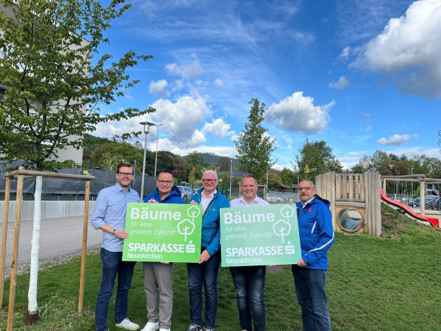 In Ternitz wurden mit der Unterstützung der Sparkasse Neunkirchen 20 Bäume verteilt in der Gemeinde gesetzt, unter anderem am Spielplatz in der Platanenstraße.