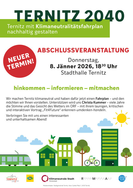 Abschlussveranstaltung "Ternitz 2040" auf 8. Jänner 2026 verschoben.