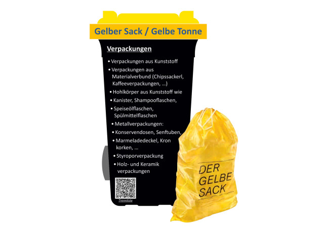Vereinfacht ausgedrückt: Alle Verpackungen aus Kunststoff, Metallverpackungen wie Konservendosen und Verpackungen aus Styropor, Holz- und Keramik müssen im gelben Sack entsorgt werden. GLAS, PAPIER und KARTON dürfen nicht in den gelben Sack!