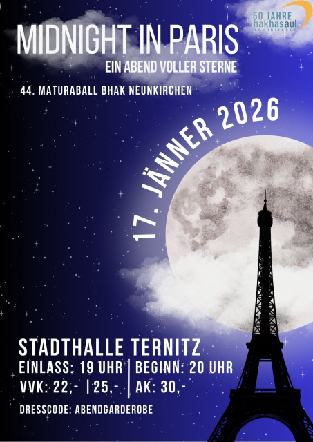 wir, die Maturantinnen und Maturanten der HAK/HAS Neunkirchen, befinden uns im letzten Schuljahr und feiern 2026 unseren Maturaball – einen der bedeutendsten und emotionalsten Höhepunkte unserer Schulzeit.